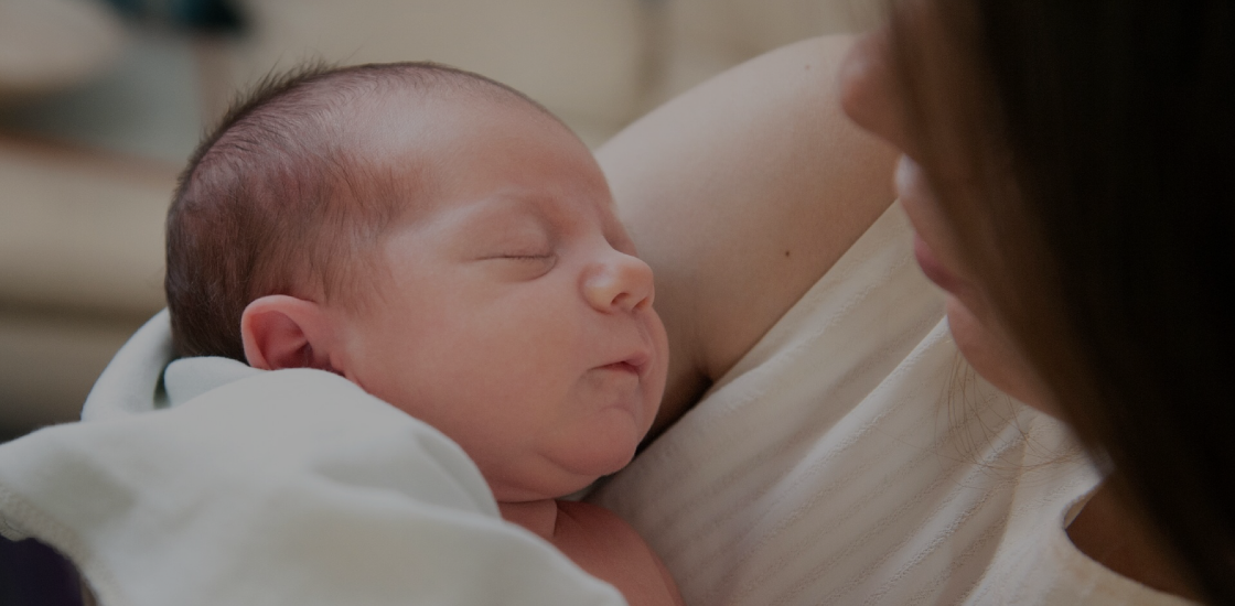 Sovende Børn – Mor med sovende nyfødt i armene_darken